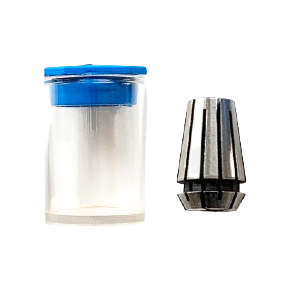 手持ちの電動工具に使用されるコレットです。電動ドリルやルーターなどに取り付けることができます。ポータブルコレットはサイズが異なる工具に対応できるよう、複数のサイズが用意されています。