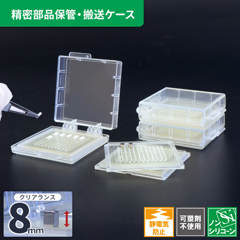 したがって、半導体に使用されるシリコンウエハを切断したウエハチップや半導体チップ、精密機器に使用されるボールレンズや半球レンズの保管容器として使用されています。