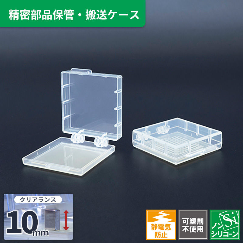 導電性の樹脂を使用しているため静電気が帯電しにくい表面処理になっています。そのため内容物が静電気破壊を起こしにくくなっておりま...