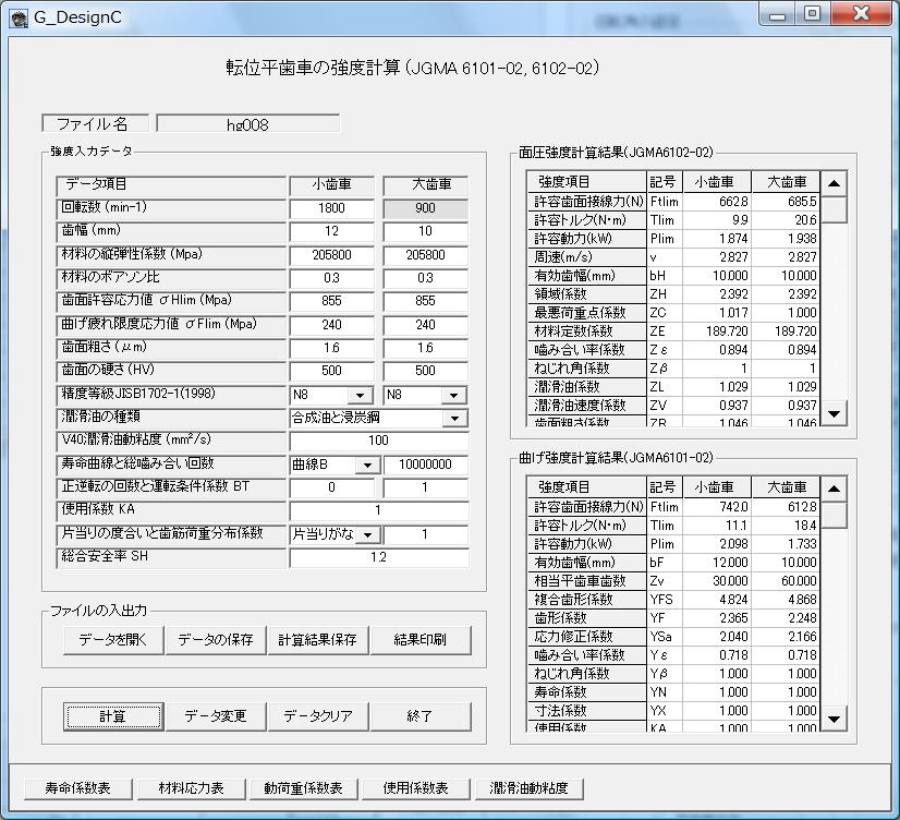「HG_DesignC」は、歯直角方式の転位はすば歯車の設計製作支援ソフト「HG_Design」に歯面強さの計算JGMA6102-02 (2009) 及び曲げ強さの...