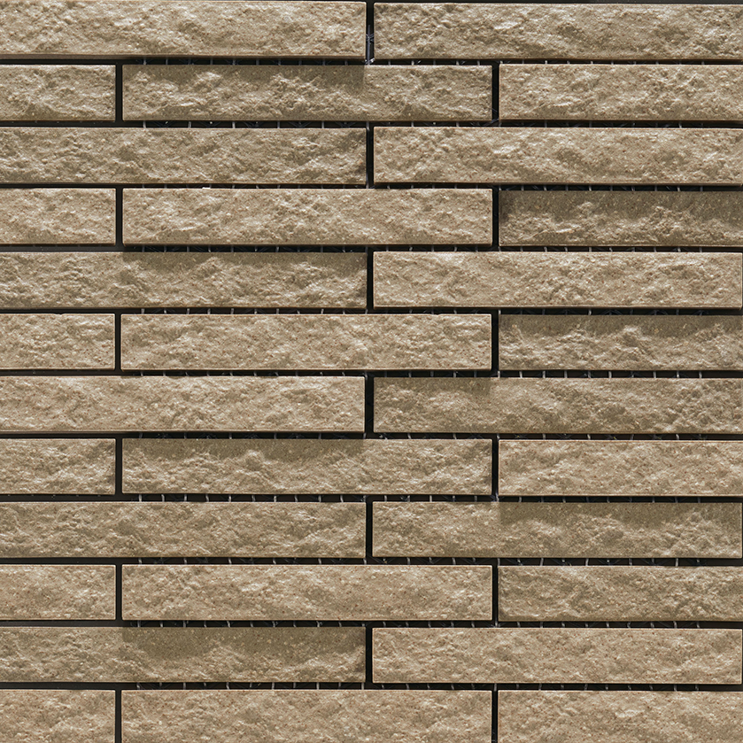 ■特徴 素材感にこだわり、レンガと同じ湿式製法で作ったボーダータイル。土の質感を引き立てるラフ面状と、厚み差による陰影が建物を柔...