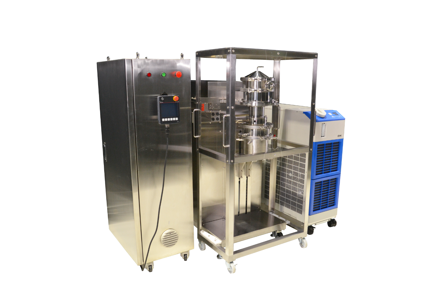 ■分級原理 樹脂製円筒スクリーン内面にブレードを高速回転させることにより、粉体原料を均一に分散させ、円筒スクリーン自体に細かい連...