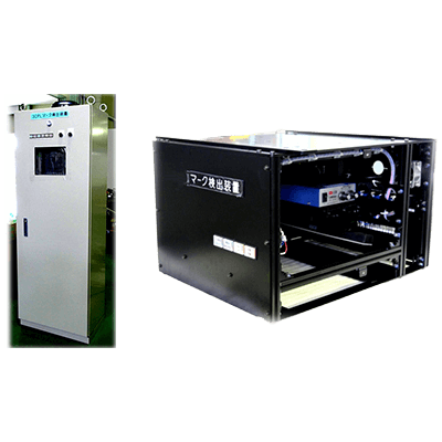 ■特徴 ・板エッジ部の0.3mmドット×25mm×2列のマークを確実に検出 ・小さな傷や汚れは画像処理で排除し、誤検出を防止 ・動作中の画像は...