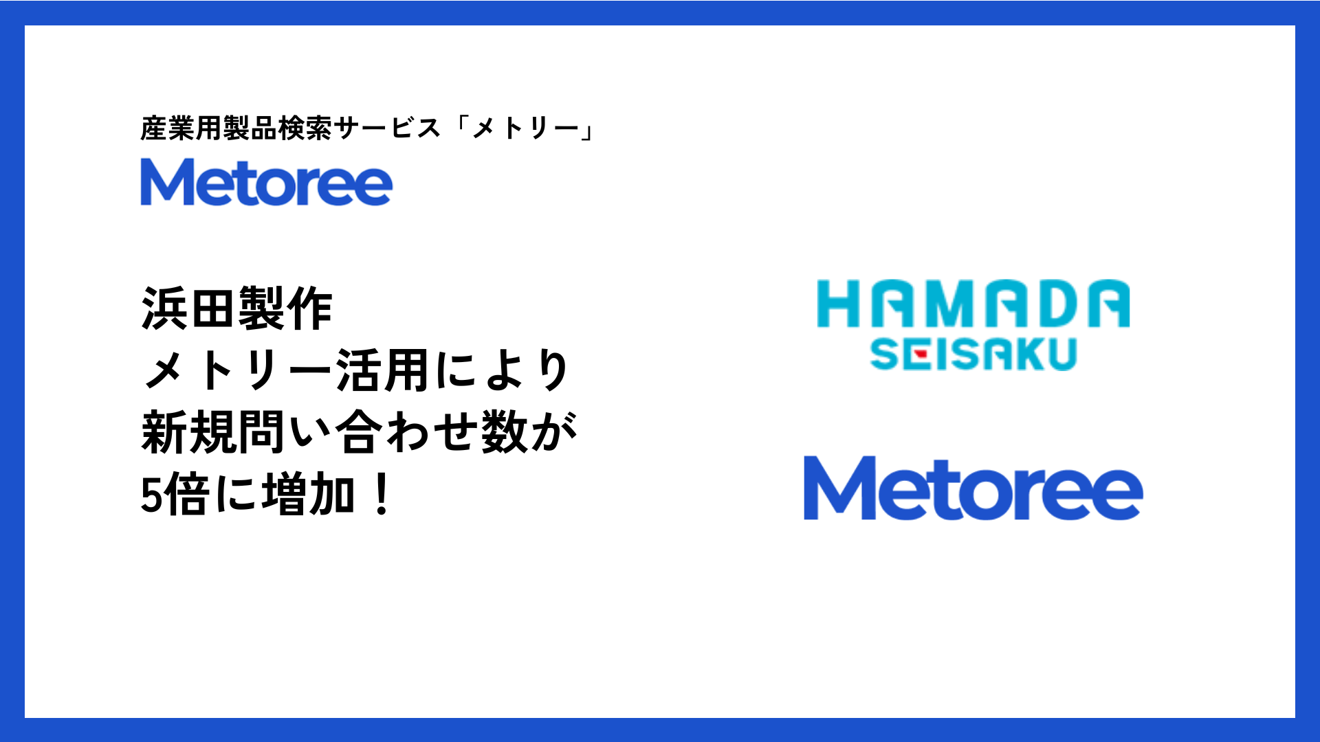【導入事例公開】浜田製作株式会社、産業用製品検索サービス「メトリー」活用により新規問い合わせ数5倍の増加を実現