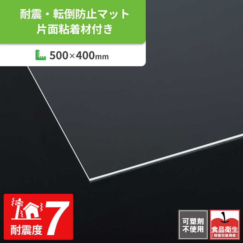 ■ゲルタックシート 粘着材付 500×400mm ・強力な粘着力で棚やテレビ、機器などの転倒を防止します。 ・振動吸収性、衝撃吸収性に富んだ強力粘着のウレタンゲルシートです。 ・地震対策用転倒防止シートや仮固定材、吸着パットに使用できます。 ・可塑剤は含まれていないため、接触面を汚染しません。 ・食品衛生法(容器包装規格)の試験にクリアした製品です。 ・ハサミやローラーカッターなどでお好きなサイズにカットできます。 ・特注サイズへのカット加工、ノンシリコーン仕様(※粘着材付は粘着剤の材料が変わります。)の対応も承っております。 *SDS、RoHS2が必要な方はお問い合わせください。 *サンプルをご入用の方はお問い合わせください。 *粘着材無しもあります。 <商品一覧> 品番:GT01-22005 厚さ(mm):1.0