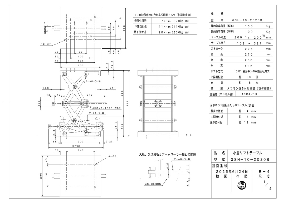 ジャッキアップ式テーブルリフト(ラボリフター) 手動回転式 GSH-10シリーズ取扱企業