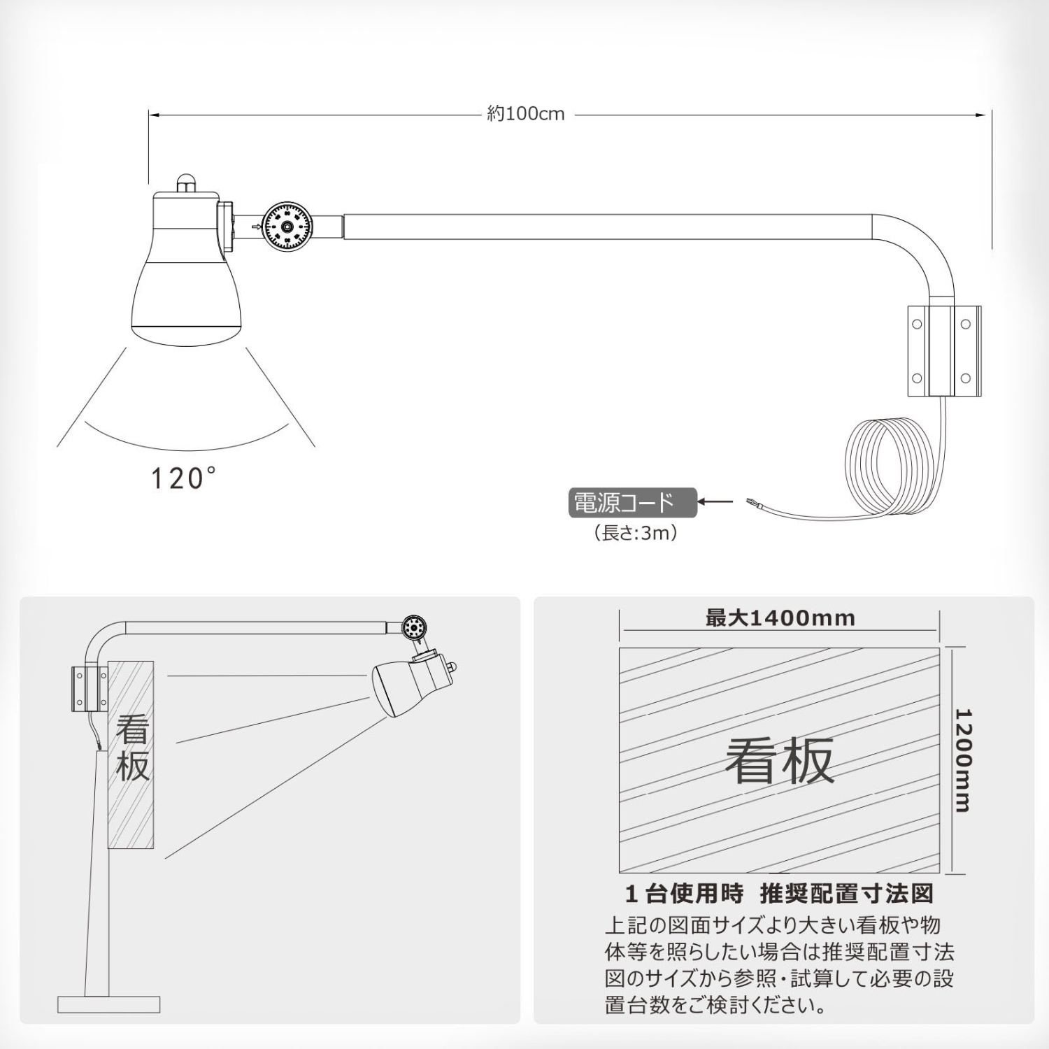 アーム付 LED看板灯 ブラケット 電球色・昼白色切替式 1台2色 45W 4500LM LD-K3G GOODGOODS グッドグッズ取扱企業