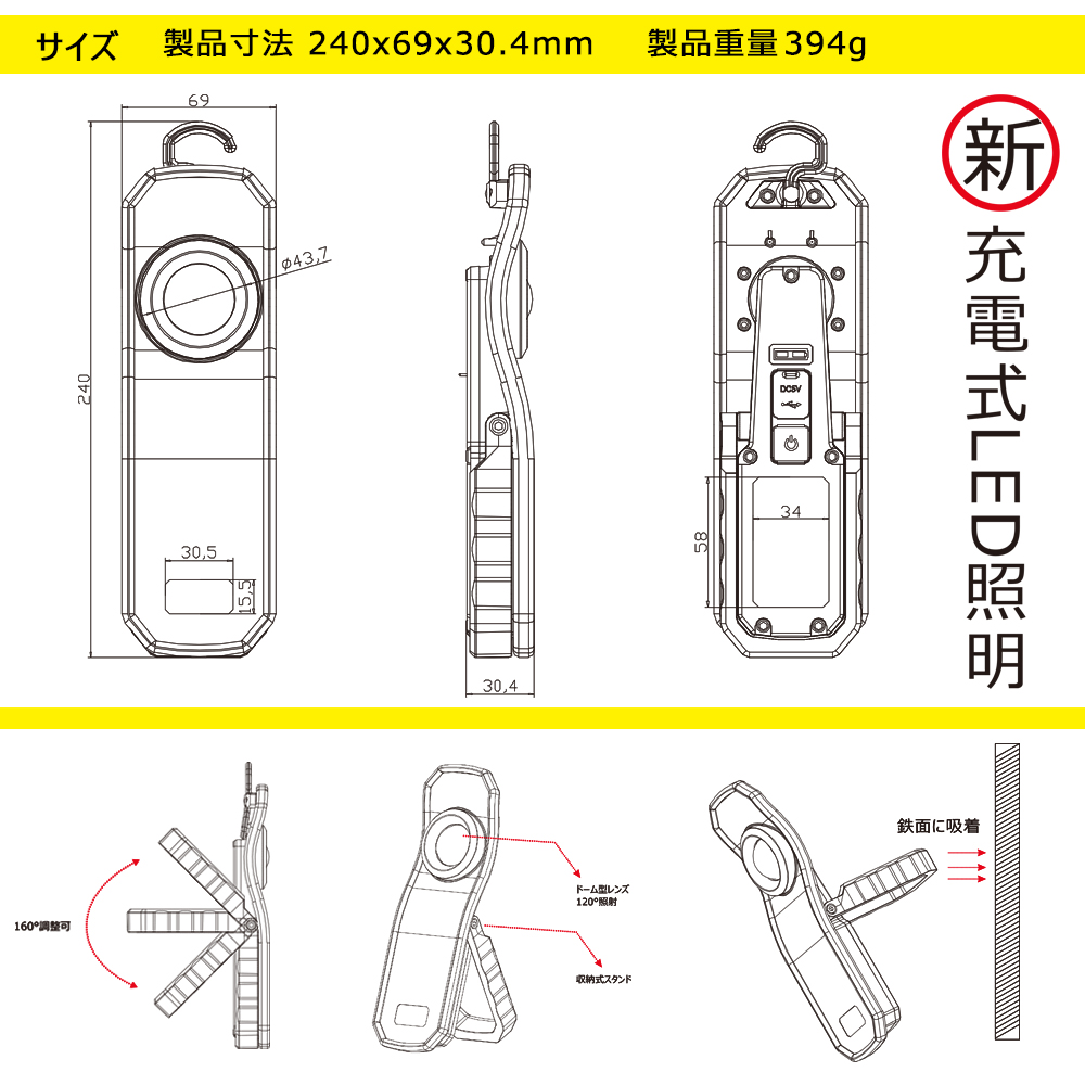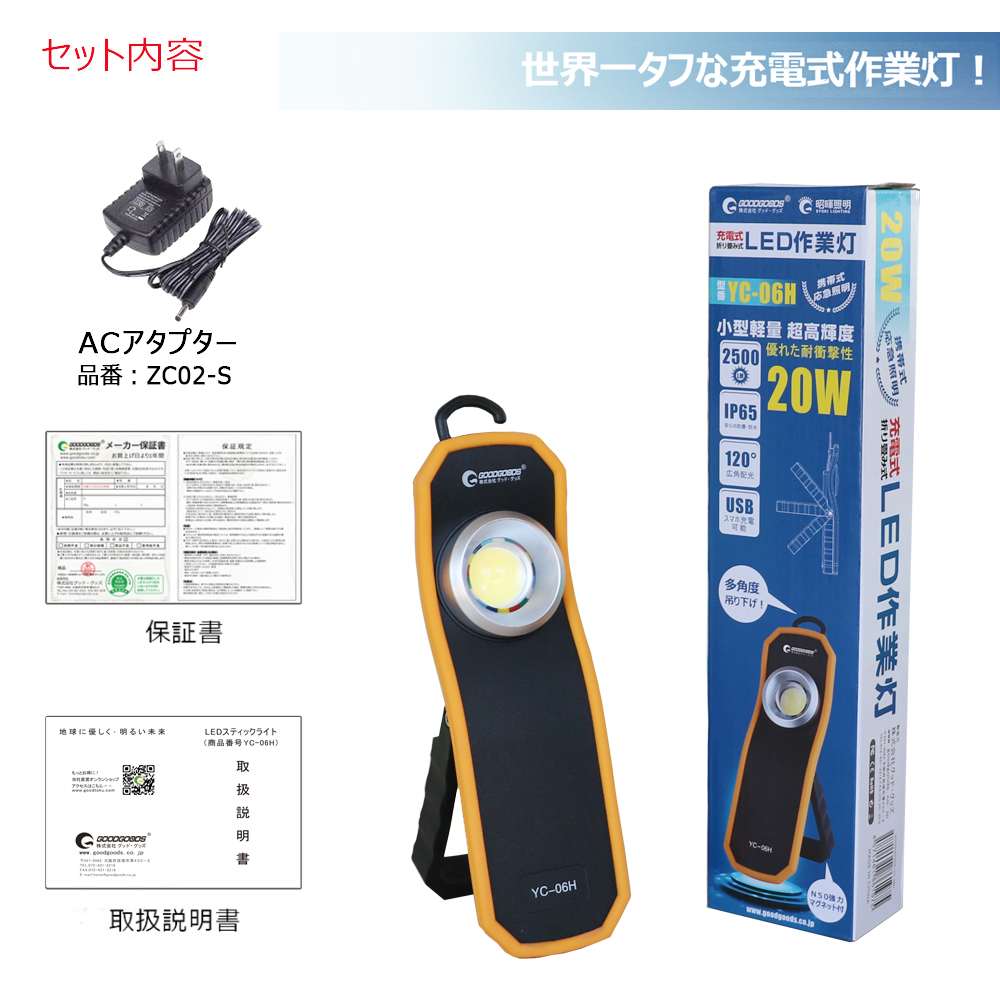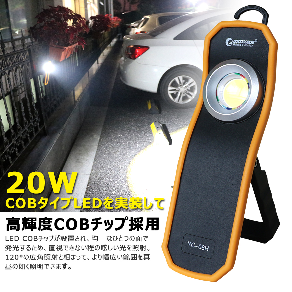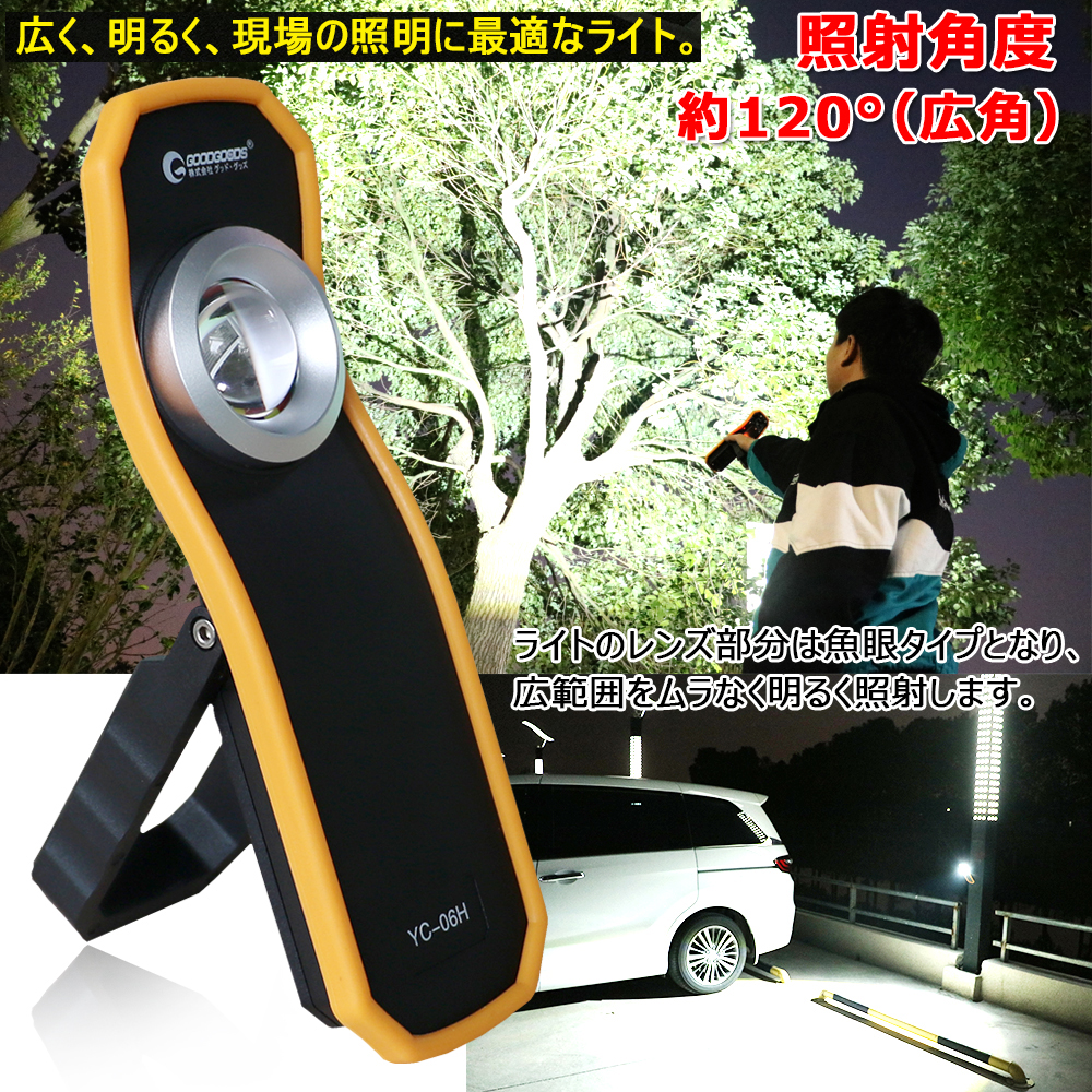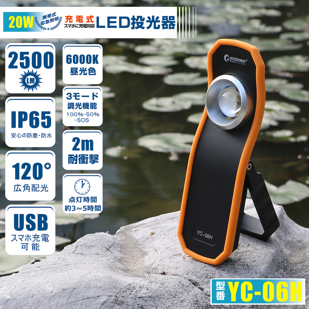 充電式投光器 20W 充電式 折り畳み式 マグネット付き スマホスタンドが使える YC-06H GOODGOODS グッドグッズ取扱企業