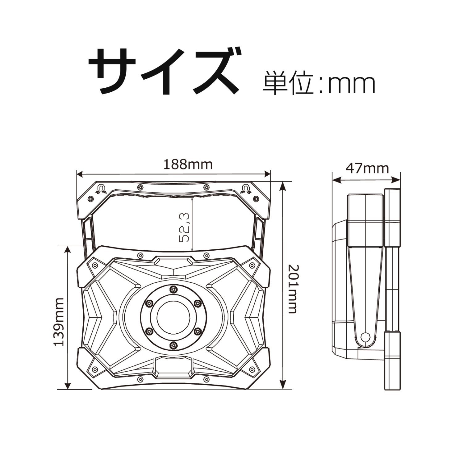 投光器本体、ACアダプター、保証書、取扱説明書 |
