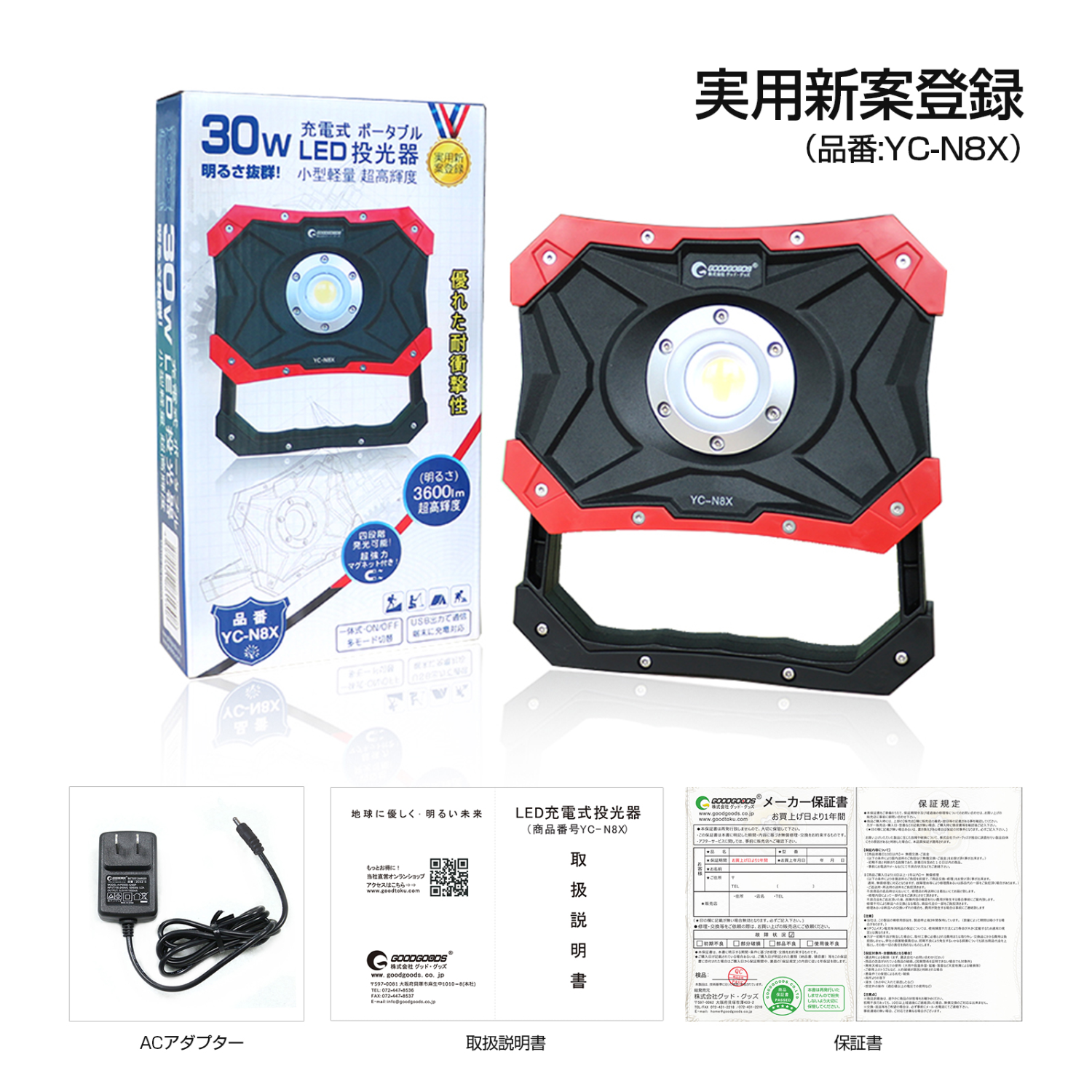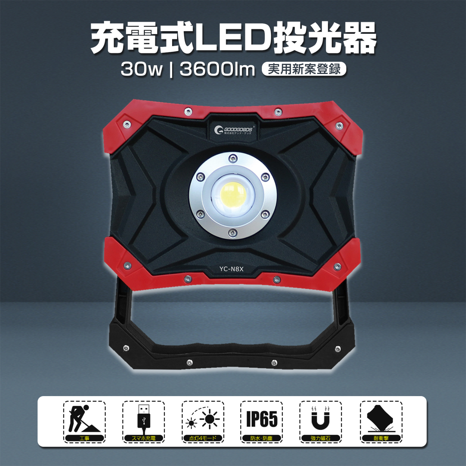 充電式投光器 折り畳み式 強力マグネット付き 耐衝撃設計 30W 車に轢かれても大丈夫 YC-N8X GOODGOODS グッドグッズ取扱企業