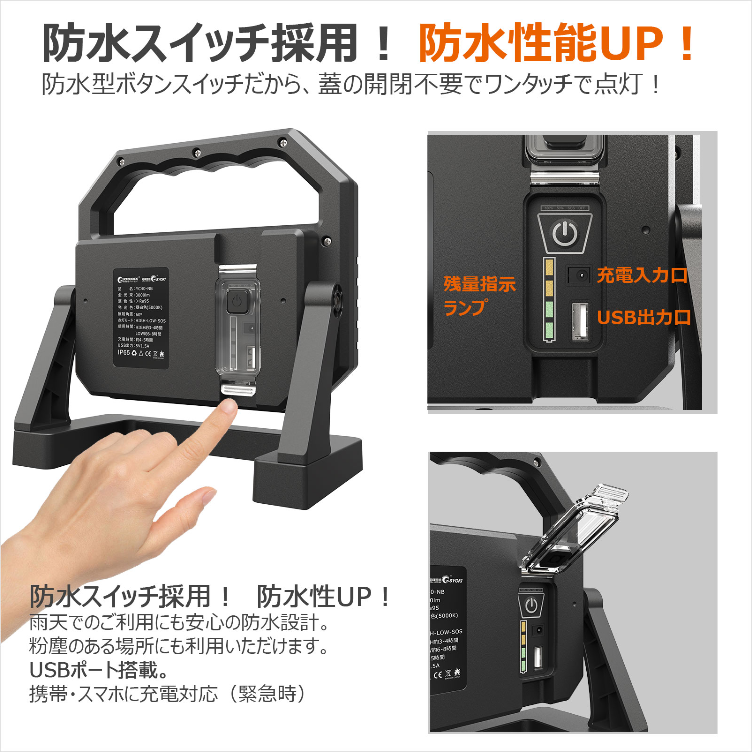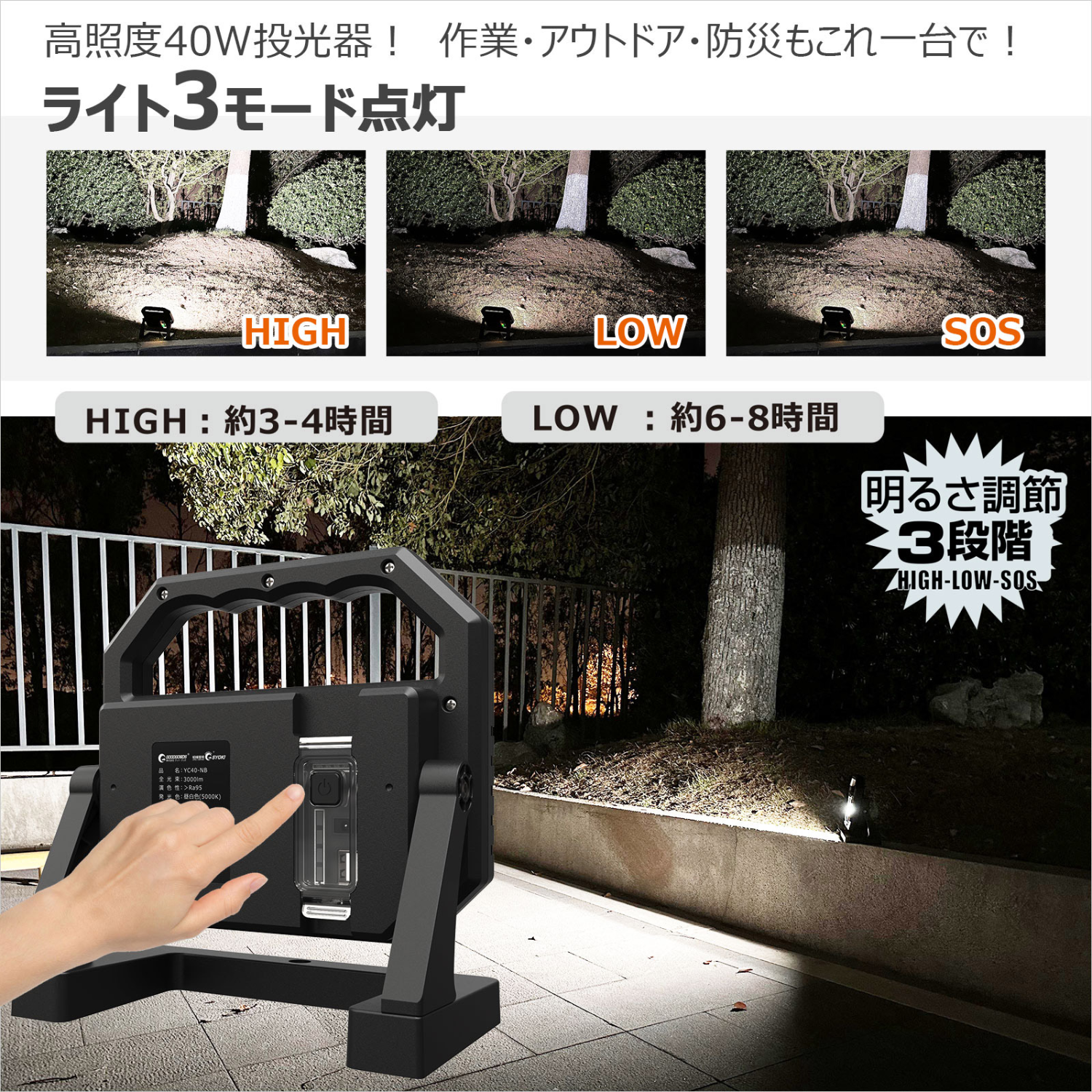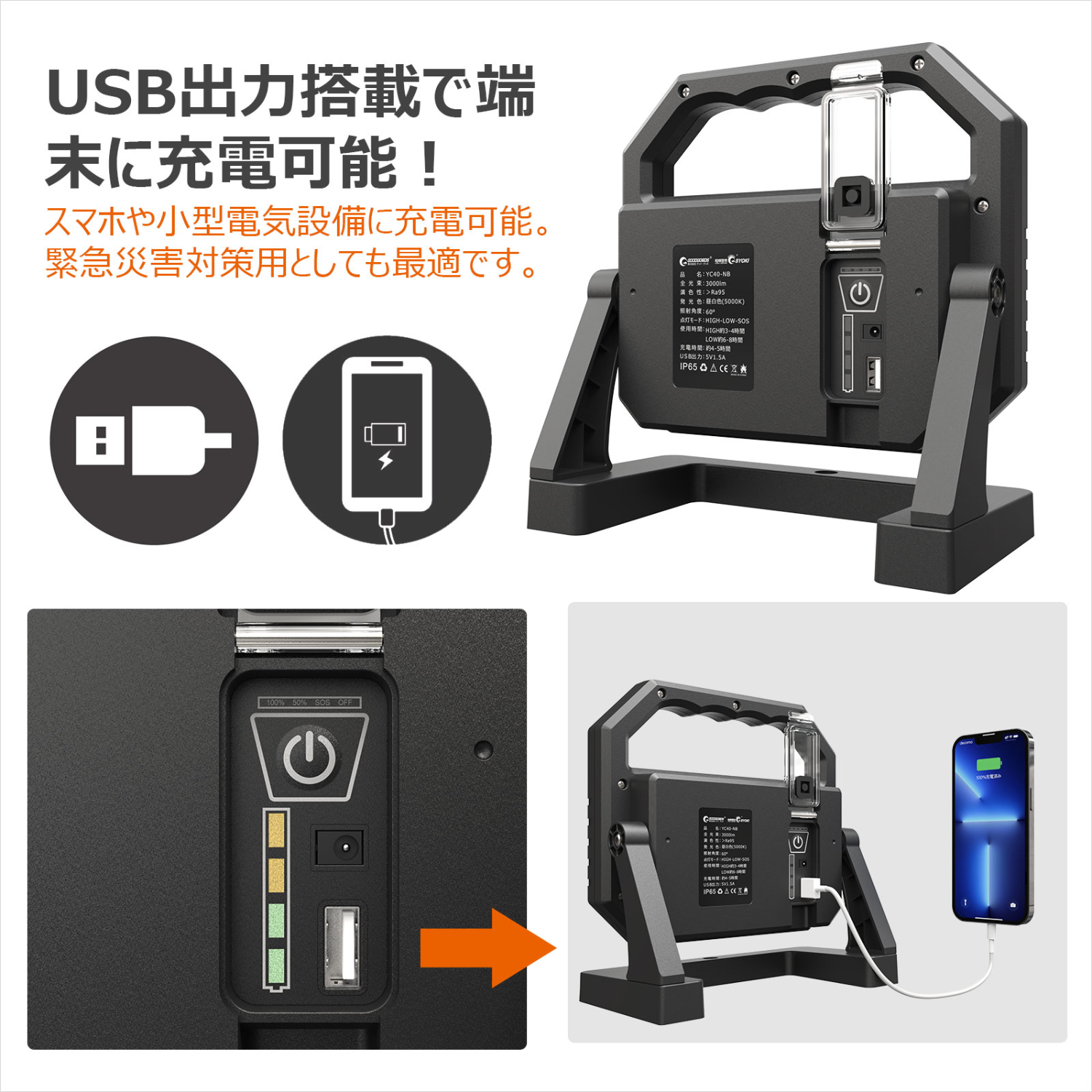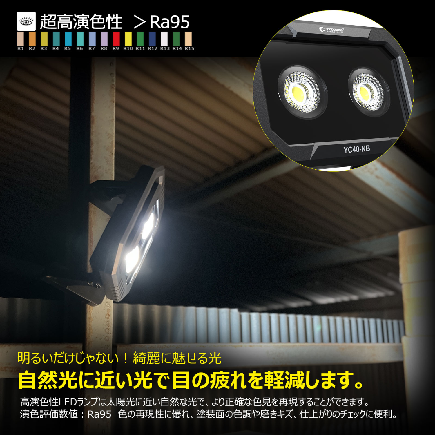 充電式投光器 高演色ライト 40w スタンド式 スタンド部強力マグネット内蔵 YC40-NB GOODGOODS グッドグッズ取扱企業