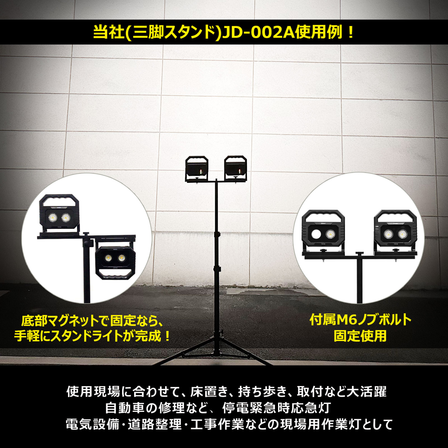 #作業現場 #可搬移動 #高所広域 #看板屋外 #特殊環境 #車両搭載 #安全誘導 #イベント演出 #植物育成 #動画撮影 #センサー連携光源方式