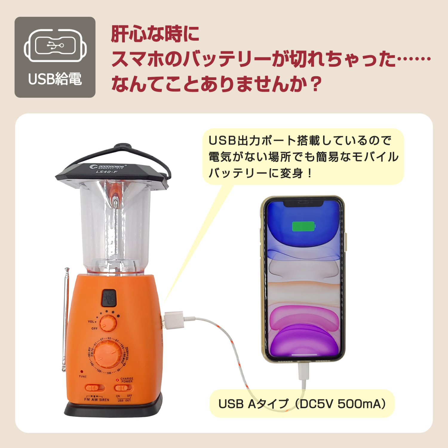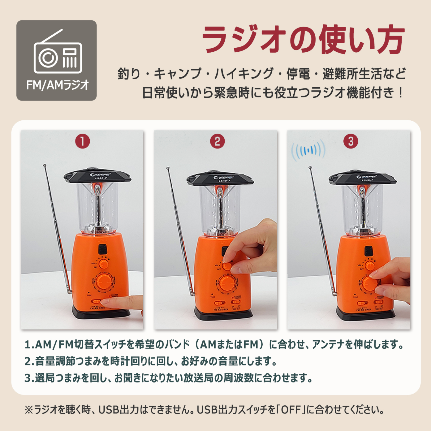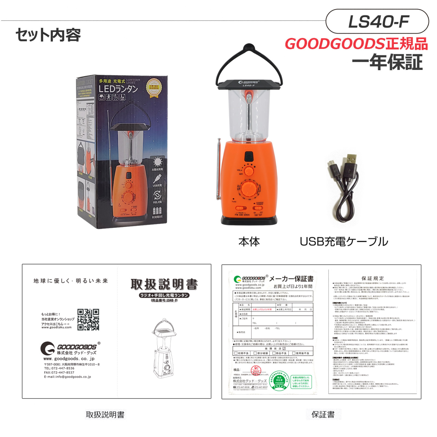充電式 ラジオ付きランタン 単3電池 3WAY充電 ソーラー充電 USB充電 手回し充電 LS40-F GOODGOODS グッドグッズ取扱企業