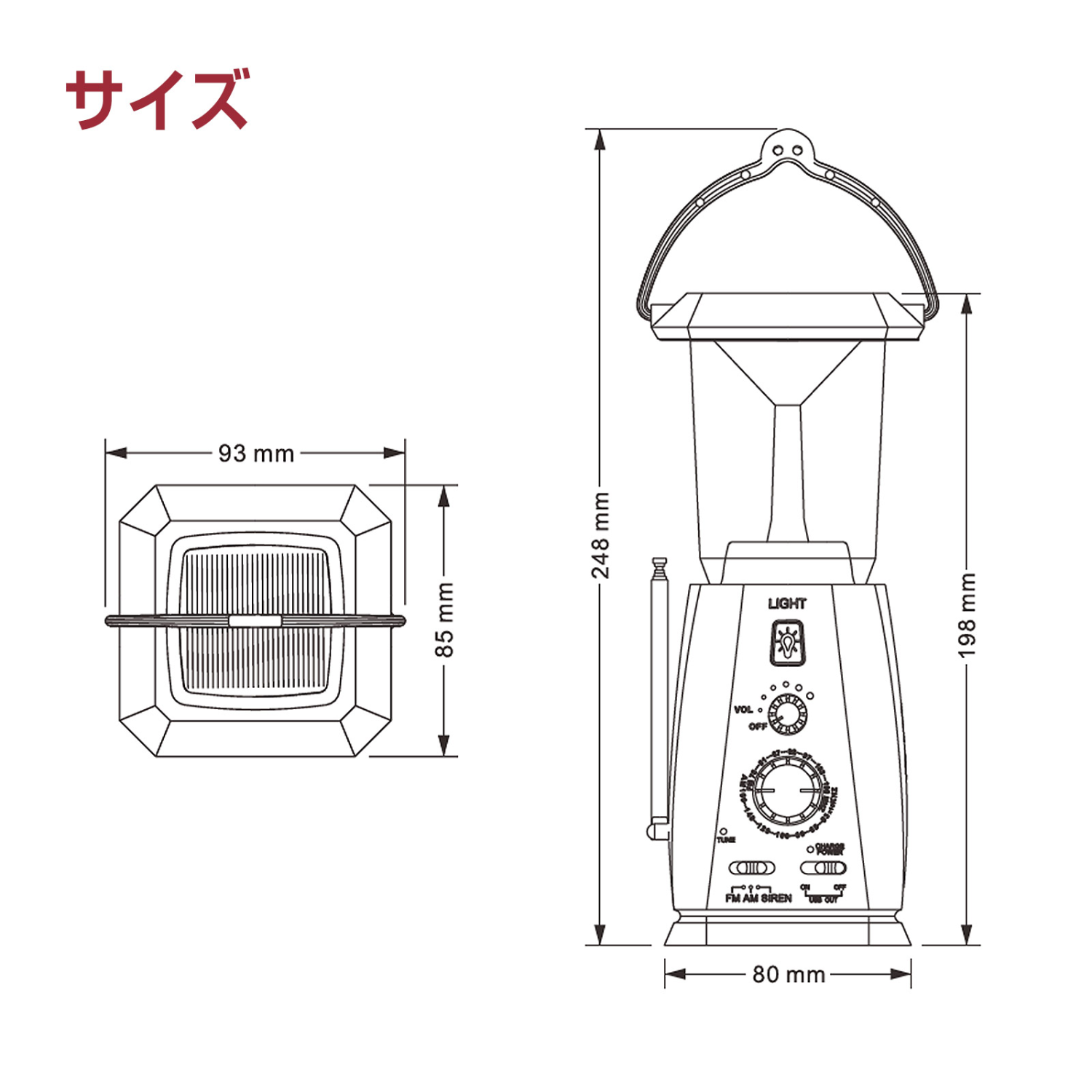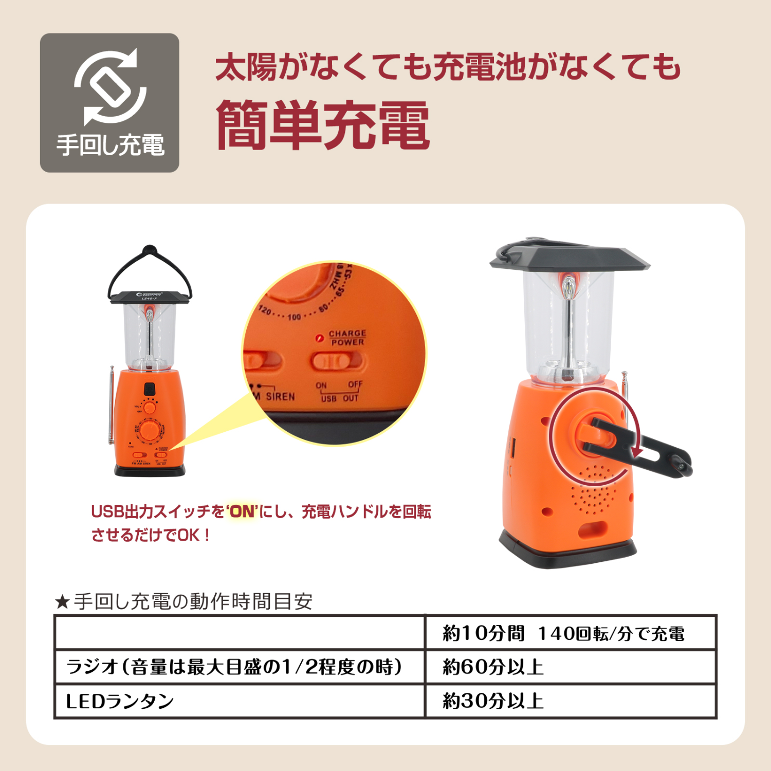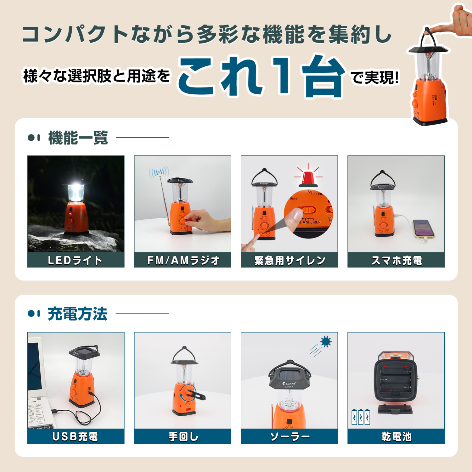 充電式 ラジオ付きランタン 単3電池 3WAY充電 ソーラー充電 USB充電 手回し充電 LS40-F GOODGOODS グッドグッズ取扱企業