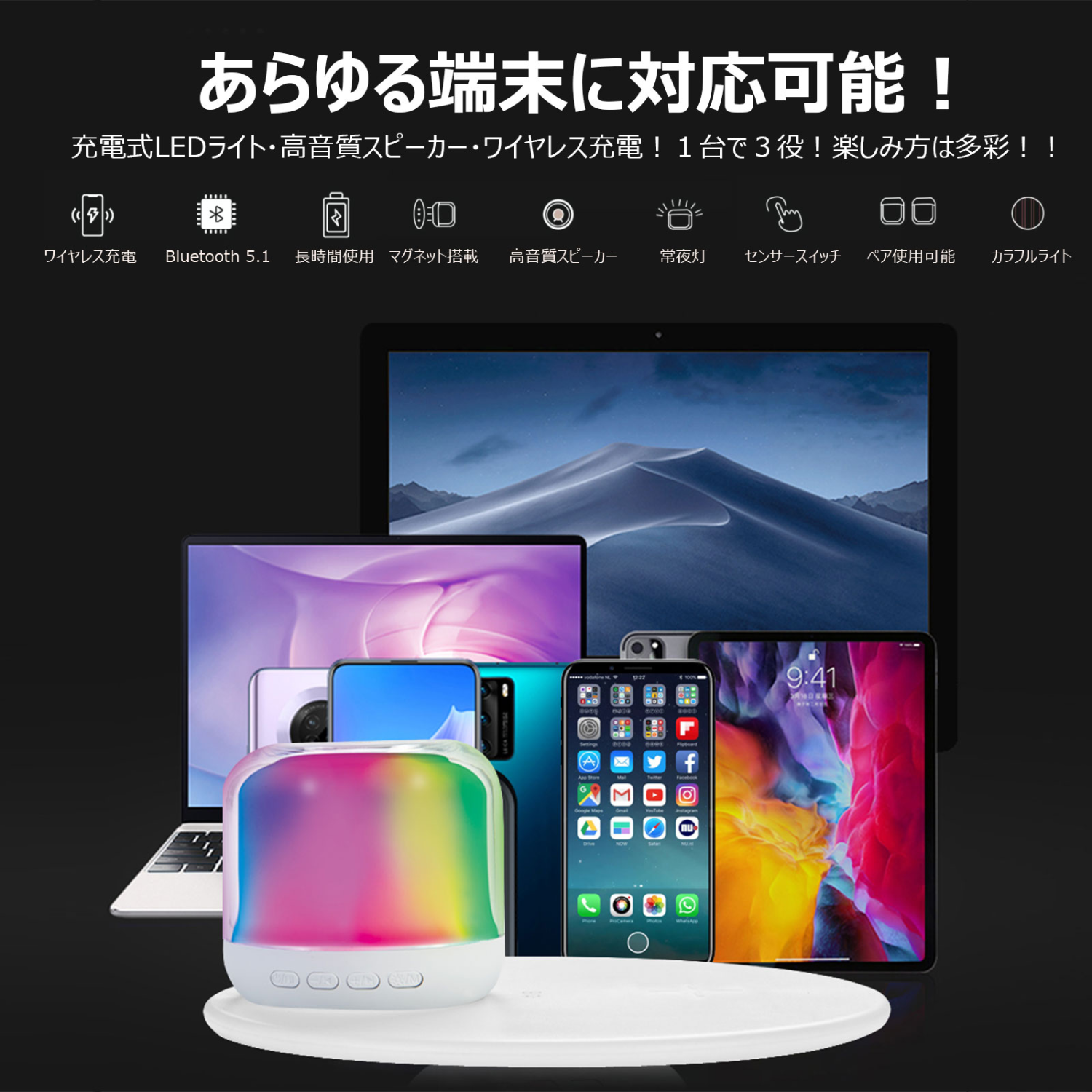 LEDライト/重低音スピーカー機能付き ワイヤレススピーカー ワイヤレス充電器 HM-01S GOODGOODS グッドグッズ取扱企業