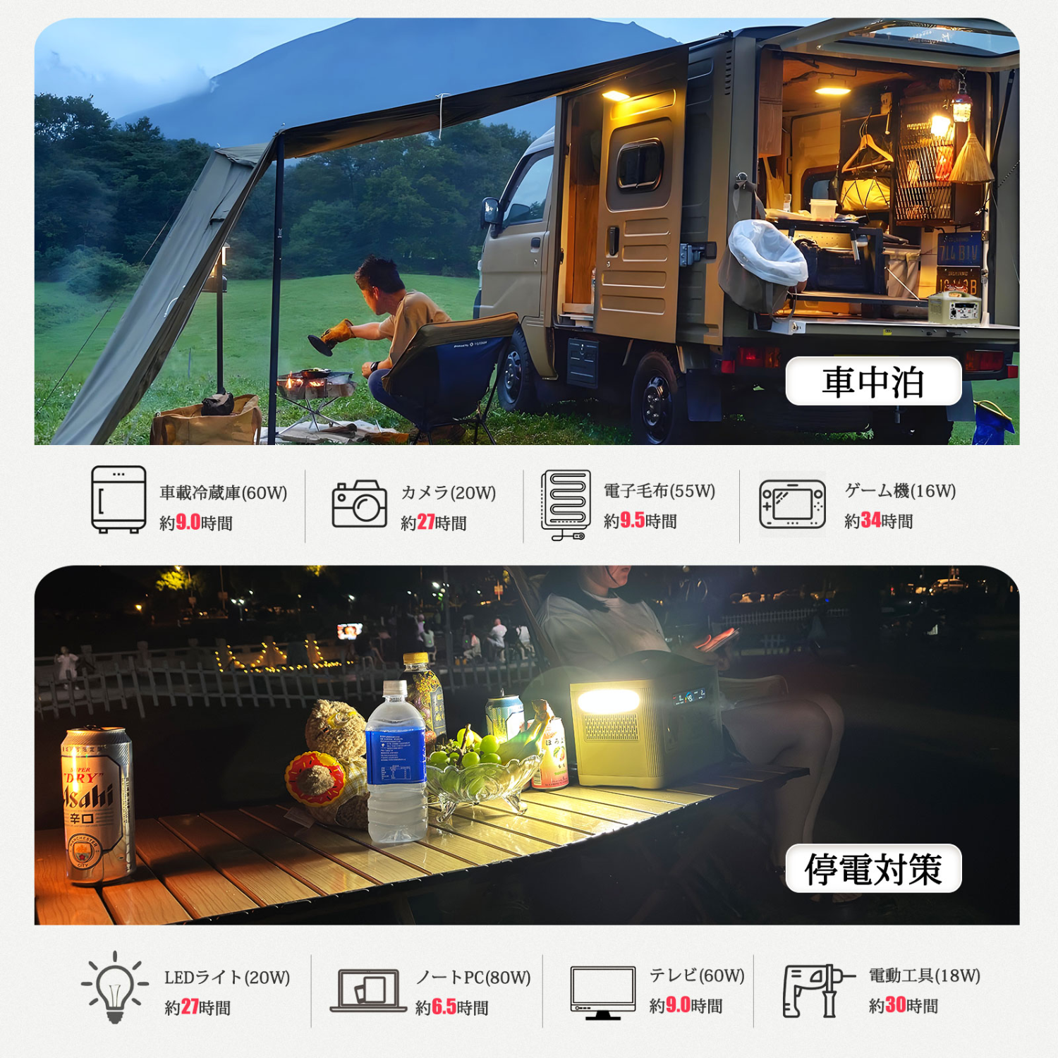 ポータブル電源本体、ACアダプター、12Vカーチャージャー、MC4ソーラー充電ケーブル、 取扱説明書 、保証書 |