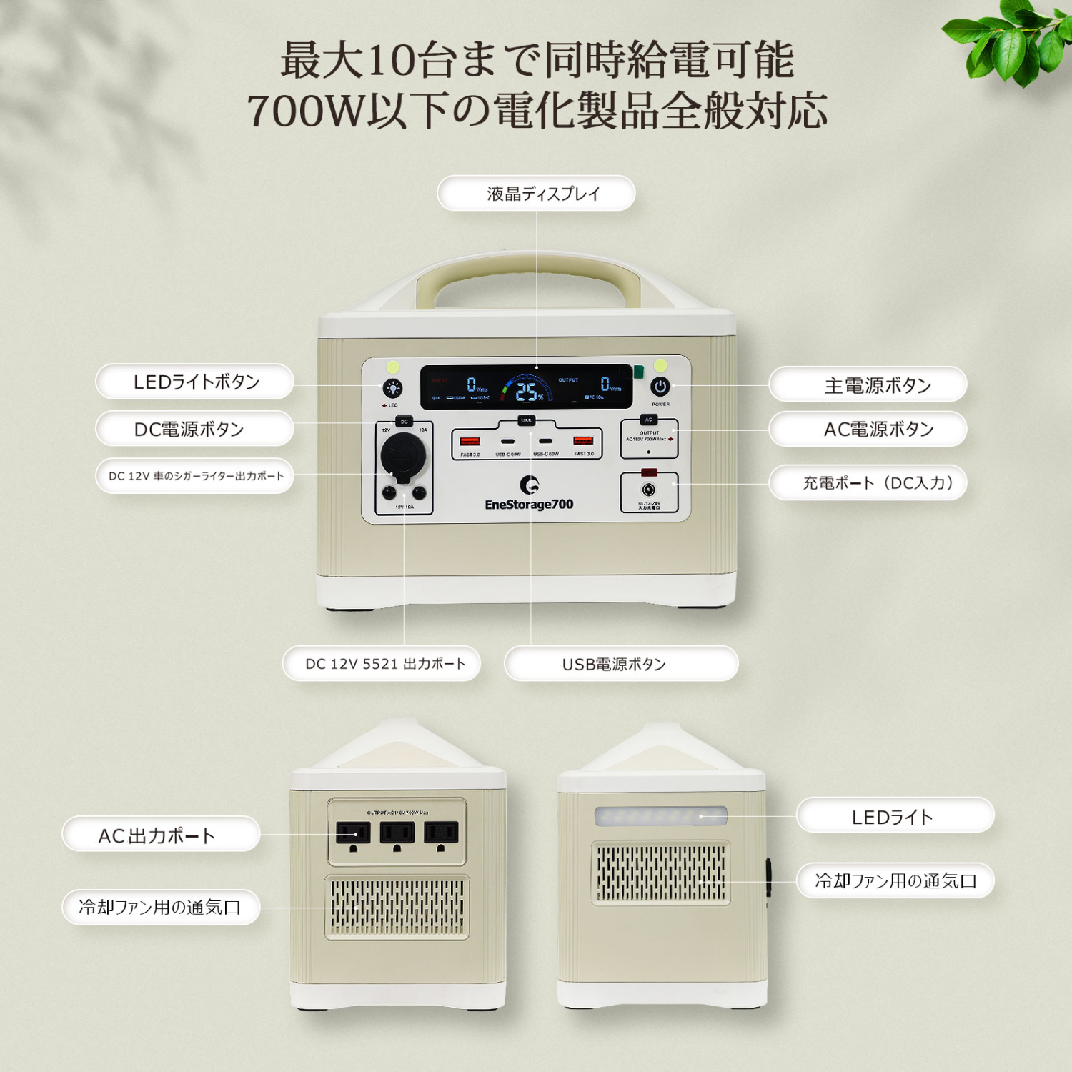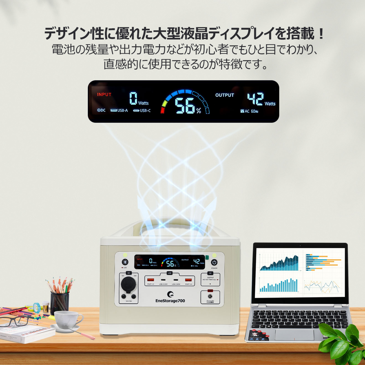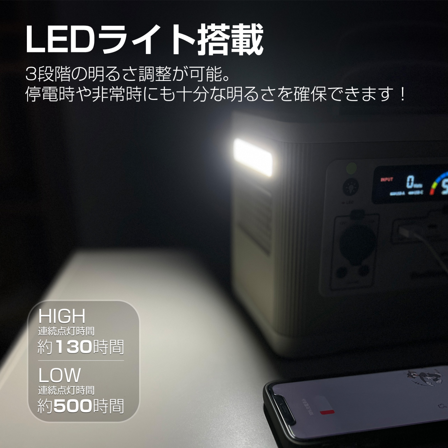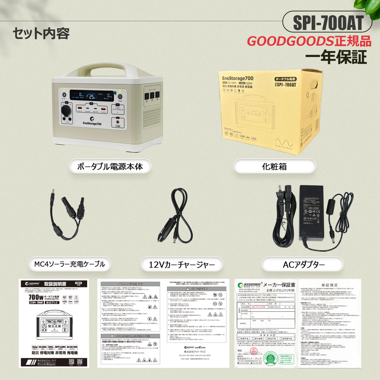 ポータブル電源 537.6Wh 純正弦波出力 LEDライト付 防災グッズ 700W SPI-700AT GOODGOODS グッドグッズ取扱企業