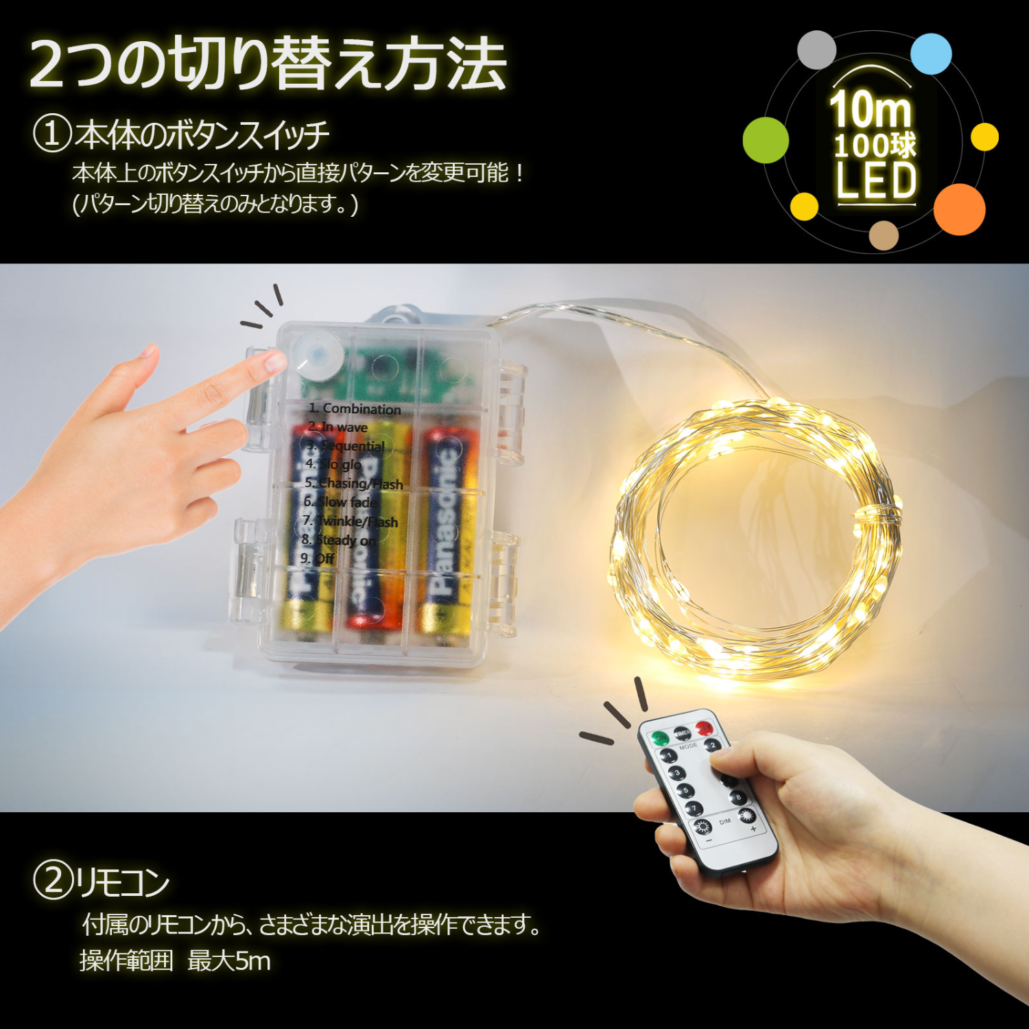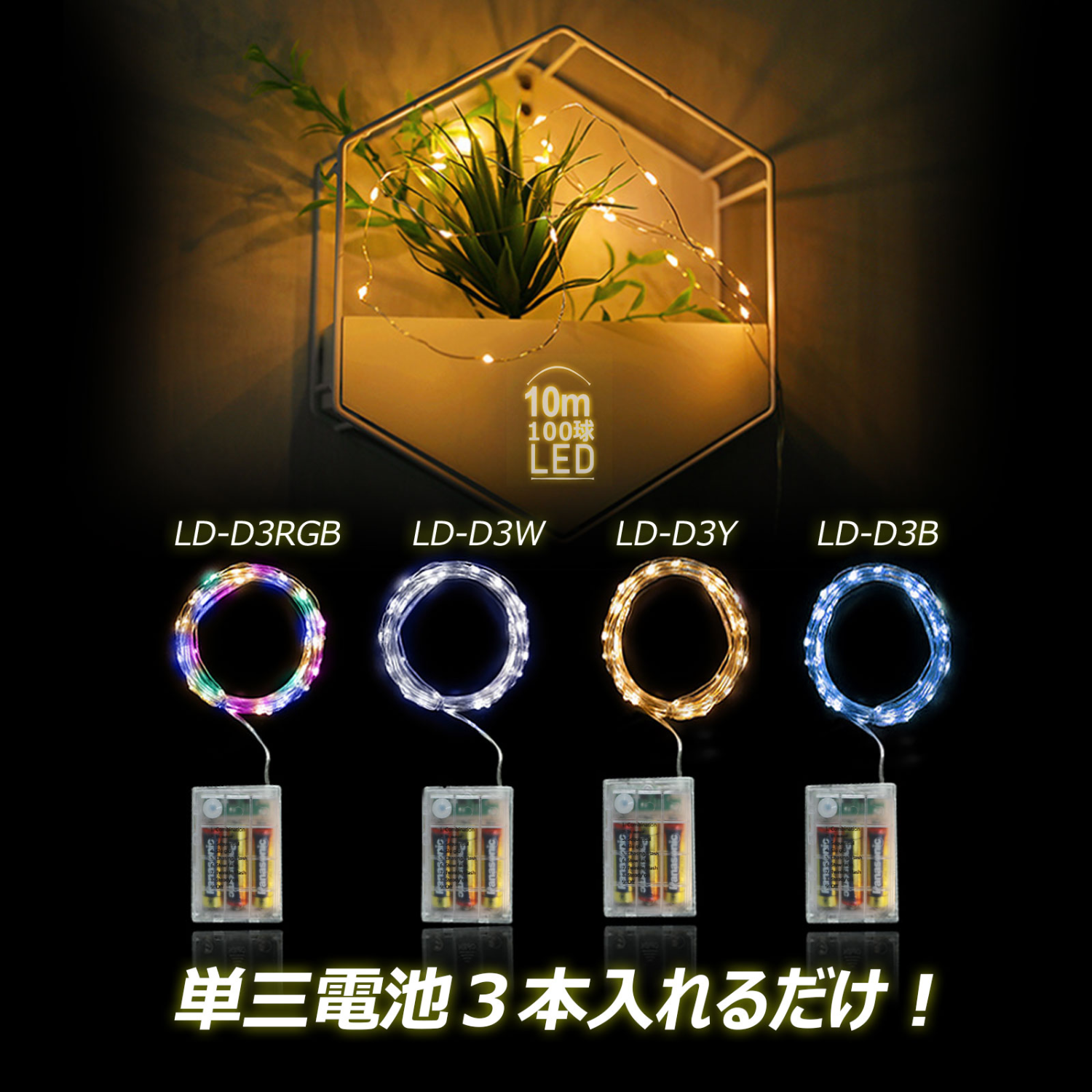 乾電池式 10m ワイヤーライト イルミネーション 電飾 リモコン付き LD-D3 GOODGOODS グッドグッズ取扱企業