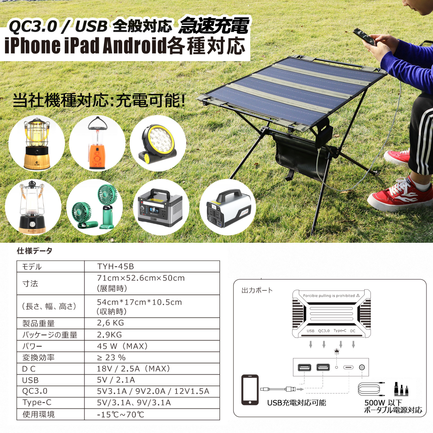 ソーラーパネル 太陽光発電 転換効率23% USB出力口 折り畳み式 ソーラーテーブル TYH-45B GOODGOODS グッドグッズ取扱企業