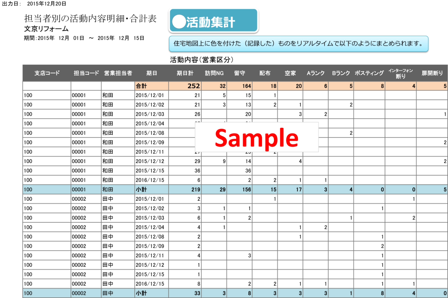 また抽出条件を指定することにより、期間指定や活動区分ごとの ダウンロードが可能です。