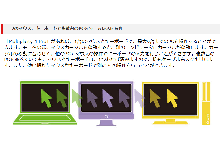 一組のマウスとキーボードで複数台のPCを操作&データコピー Multiplicity 4 Pro取扱企業