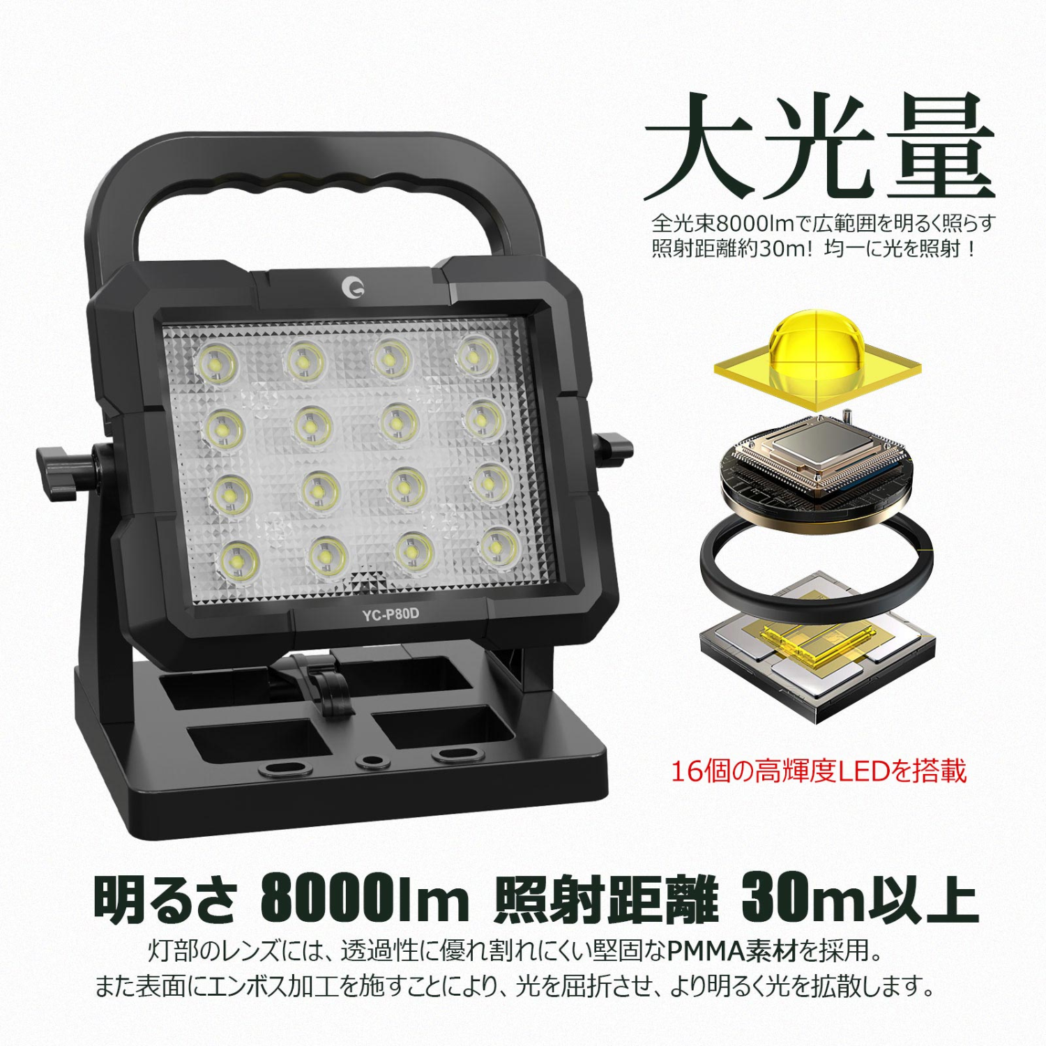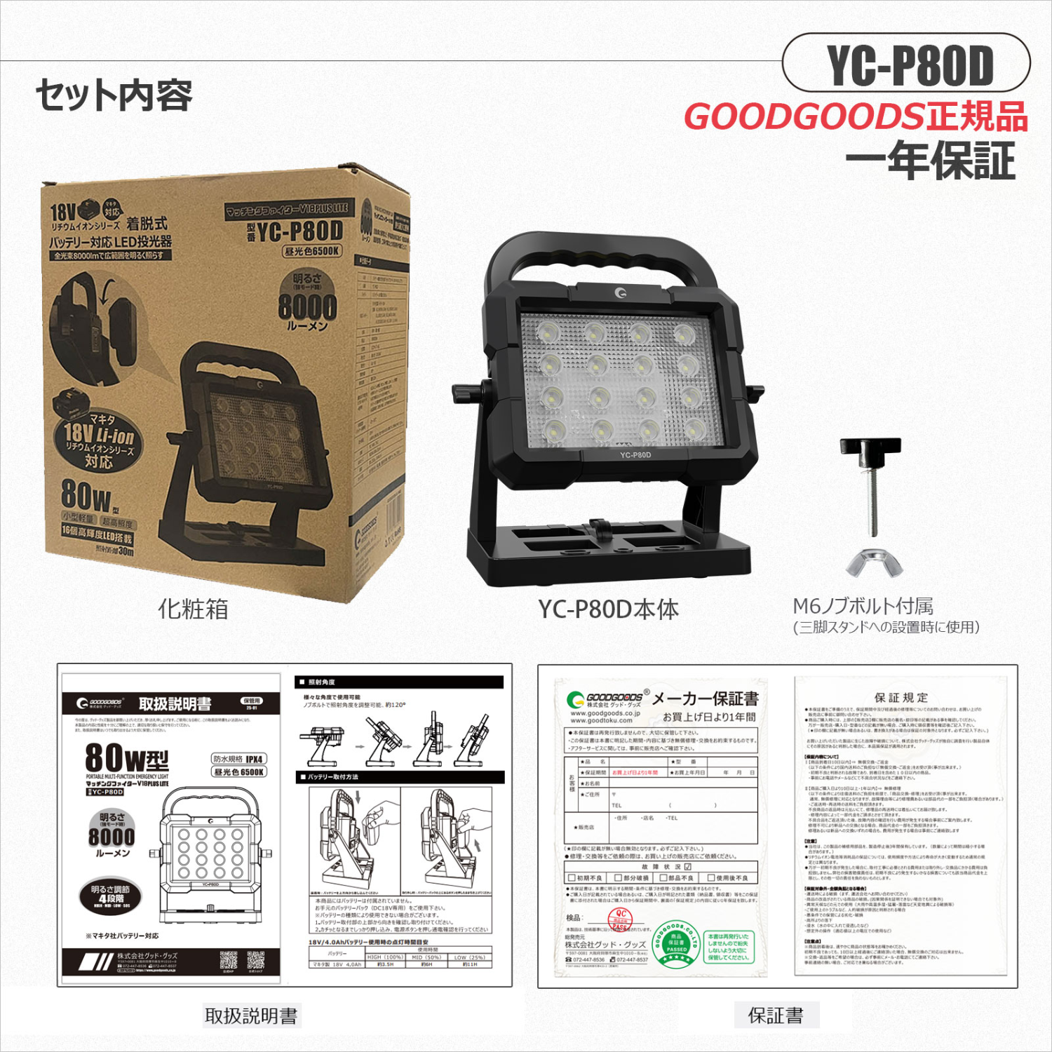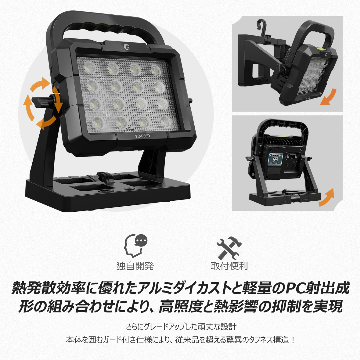 充電式投光器 マッチングファイター18V PLUS LITE マキタバッテリー対応可 80W 作業灯 YC-P80D取扱企業