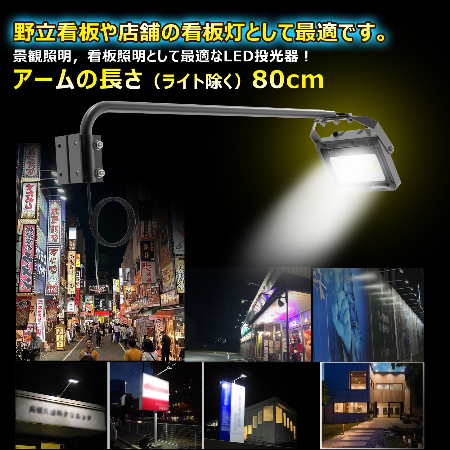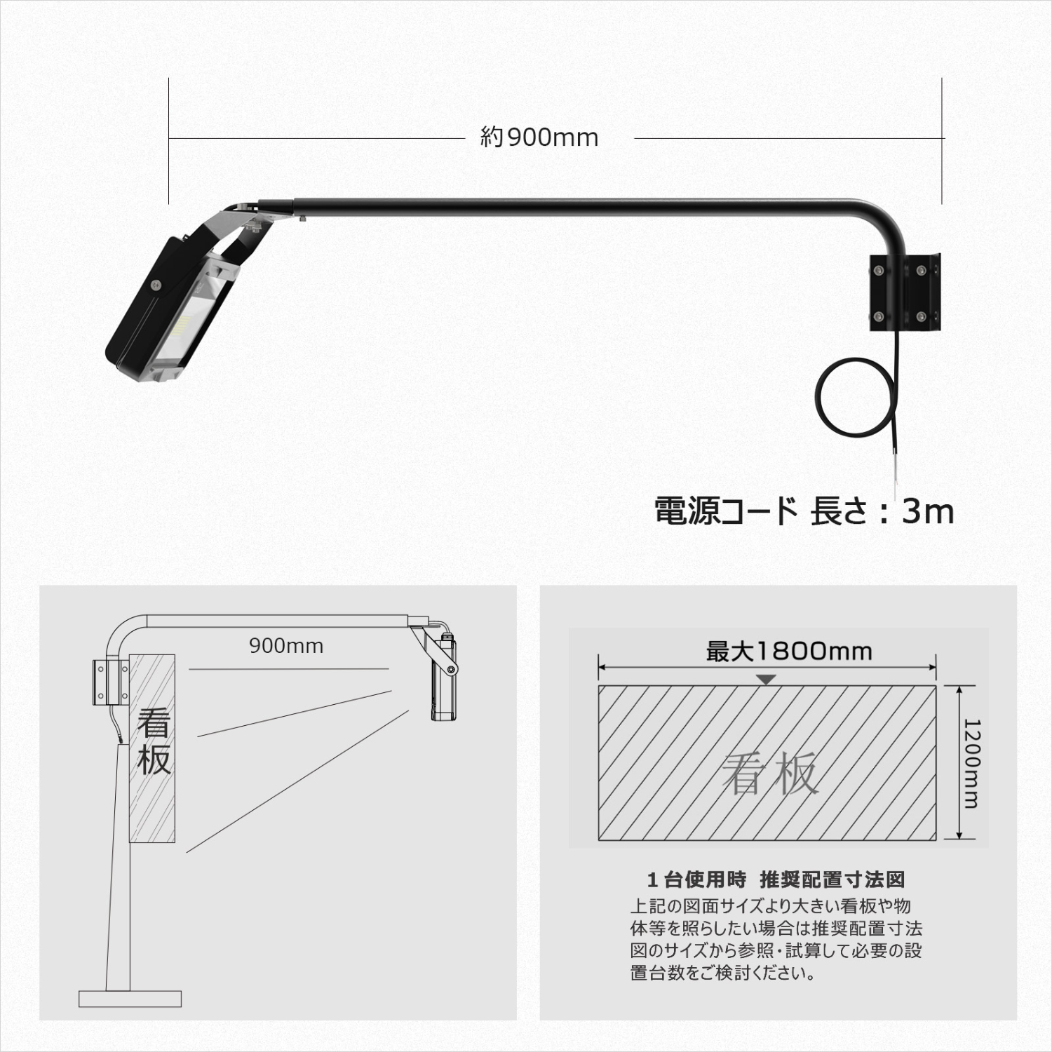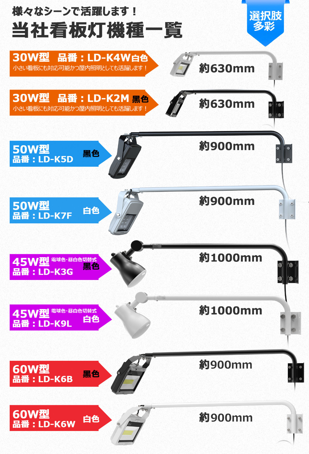 アーム付き LED看板灯 ブラケット付き 高演色性Ra95 60W 7,000lm 黒 LD-K6B取扱企業