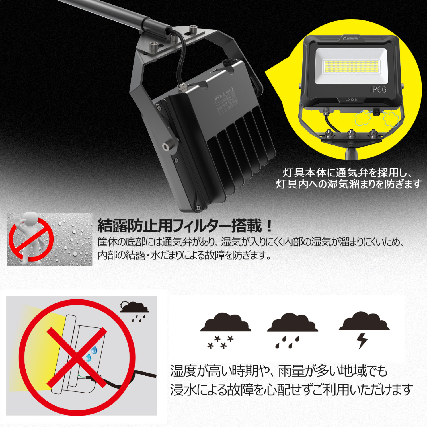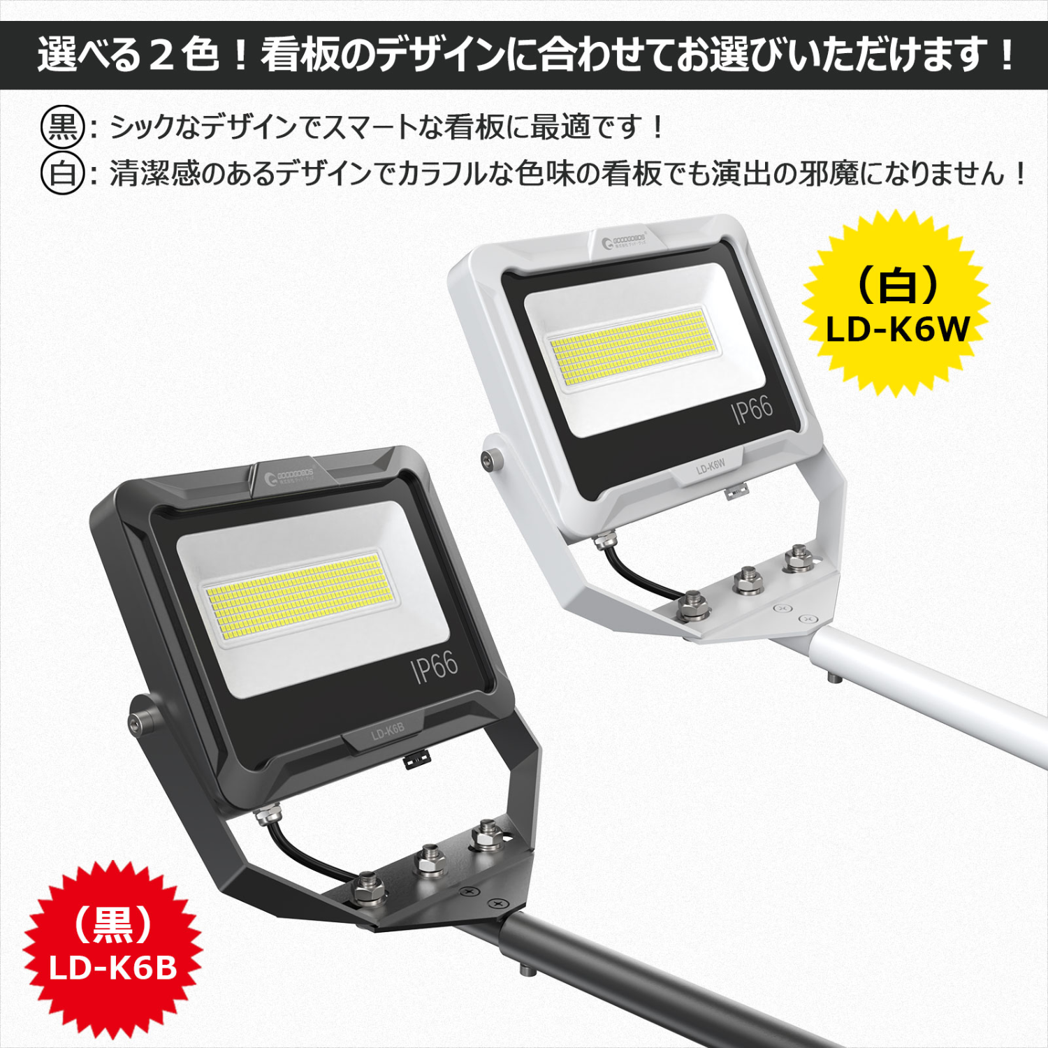 LED投光器 狭角・スポット照射 中距離照射 50W 7020LM LDJ-50H GOODGOODS グッドグッズ