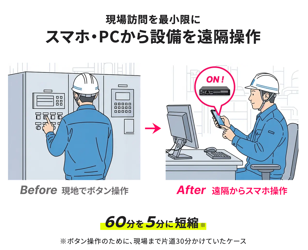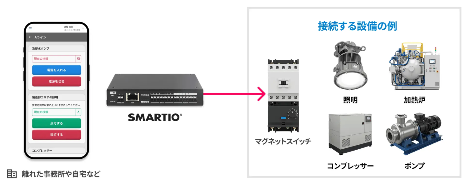 スマホからマグネットスイッチや電磁弁を遠隔操作。設備のリモート操作に遠隔接点制御 SMARTIO® スマーティオ。取扱企業