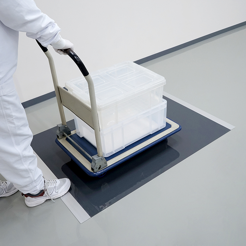 靴底や台車のタイヤに付着した毛髪・ほこりなどを除去する粘着マット ステップマット®取扱企業