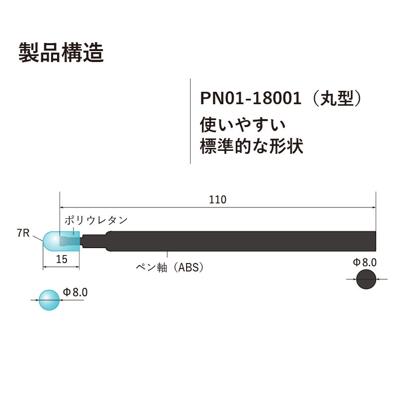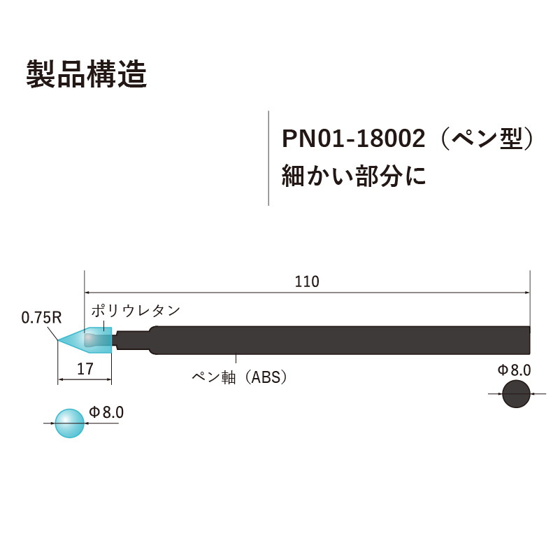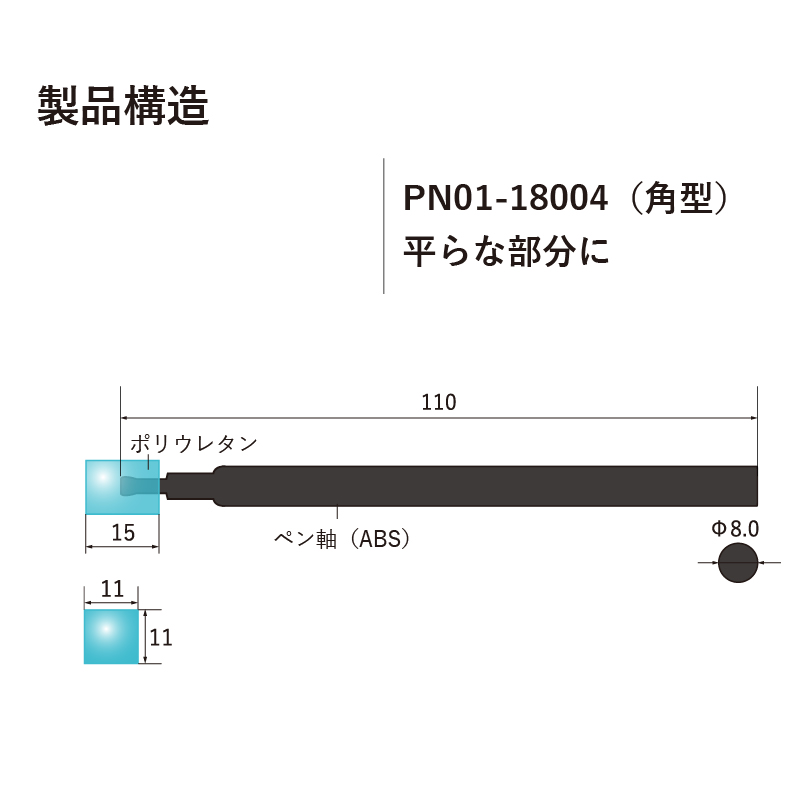 ポリカーボネート ポリプロピレン樹脂 導電性PP先端ゴム部サイズ mm