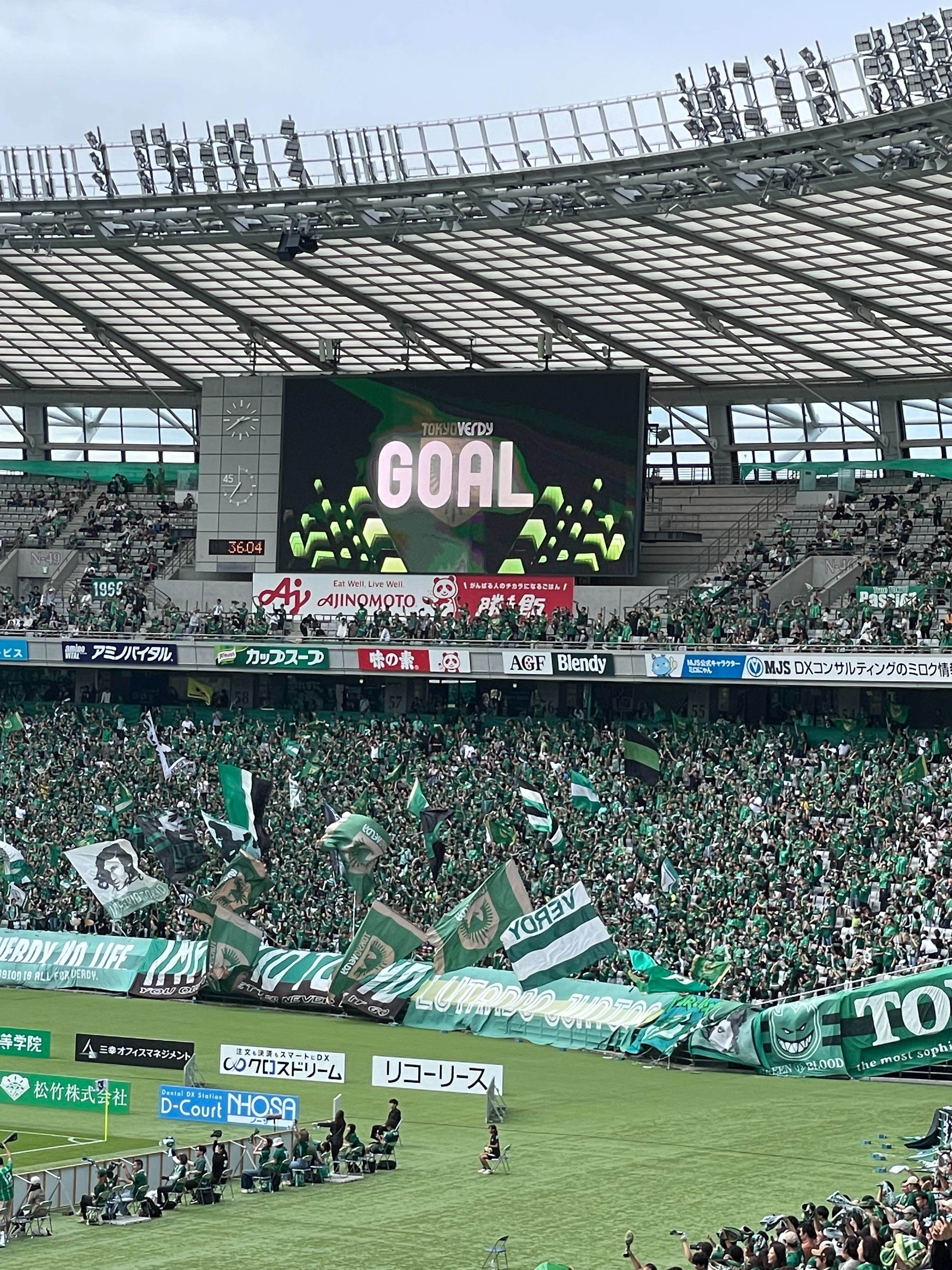 本試合は東京ヴェルディが1-0で勝利し、スタジアムは大いに盛り上がりました。