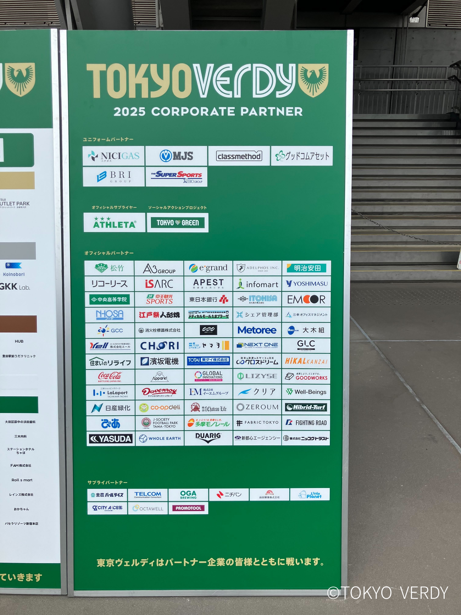 また味の素スタジアムにはベルディコーポレートパートナーのパネルが掲載されており、メトリーのロゴも掲載されています。