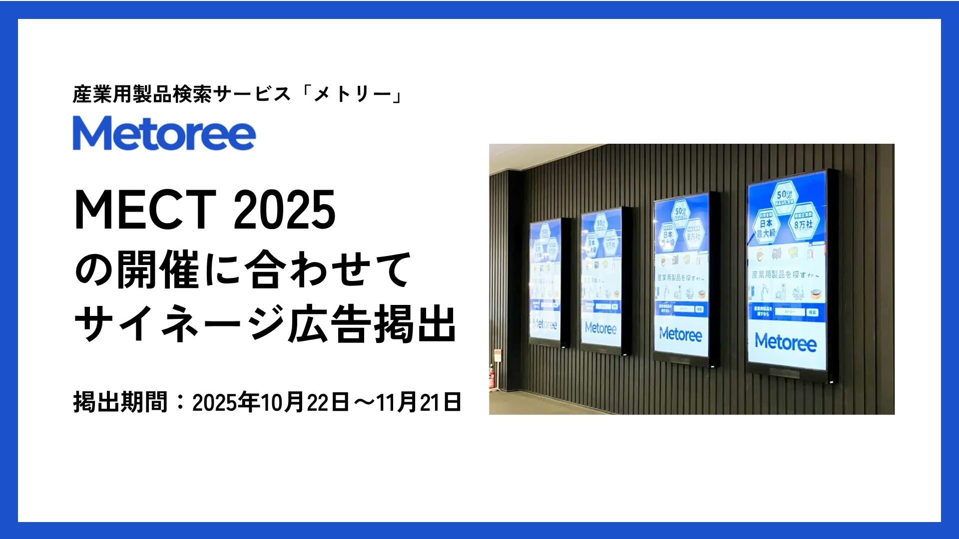産業用製品検索サービス「メトリー」、日本最大級の工作機械見本市「MECT 2025(メカトロテックジャパン2025)」開催にあわせ、来場者の主要動線に大型サイネージ広告を掲出