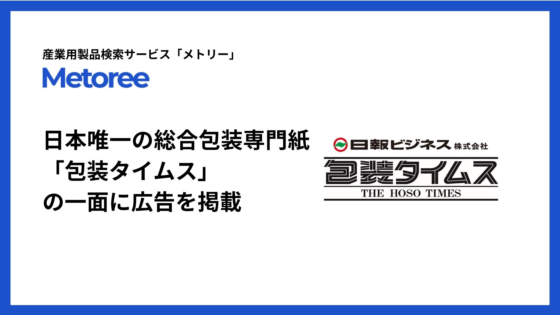 今回の広告展開は、容器包装資材や包装機械の製造、印刷加工、そして流通を担う商社・ディーラーといった、包装業界のサプライチェーンを構成する専門層へダイレクトにリーチすることを目的としています。 多種多様な資材や技術が複雑に絡み合う包装業界において、最適な仕様やサプライヤーを比較検討するプロフェッショナルの方々にとって、メトリーの検索性は極めて親和性が高く、国内唯一の業界専門紙への掲出を通じて、実務に直結するプラットフォームとしての地位を確立してまいります。